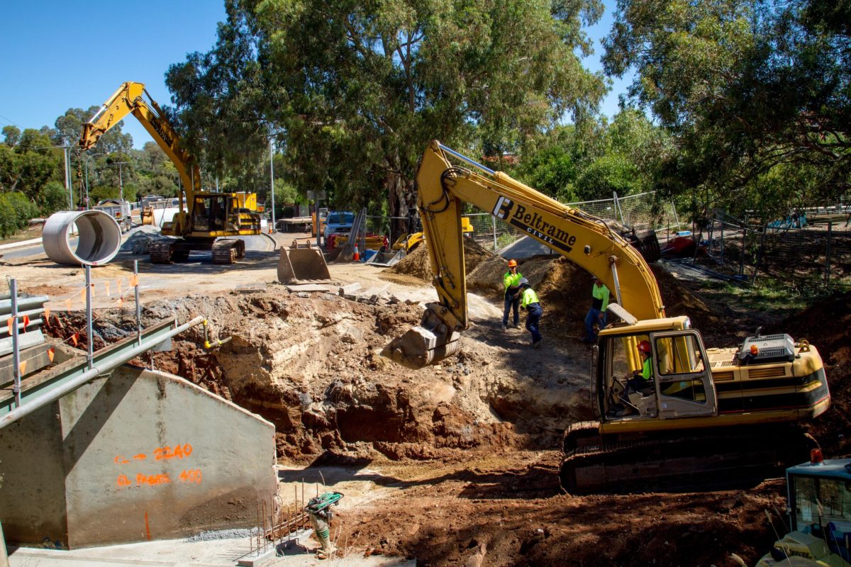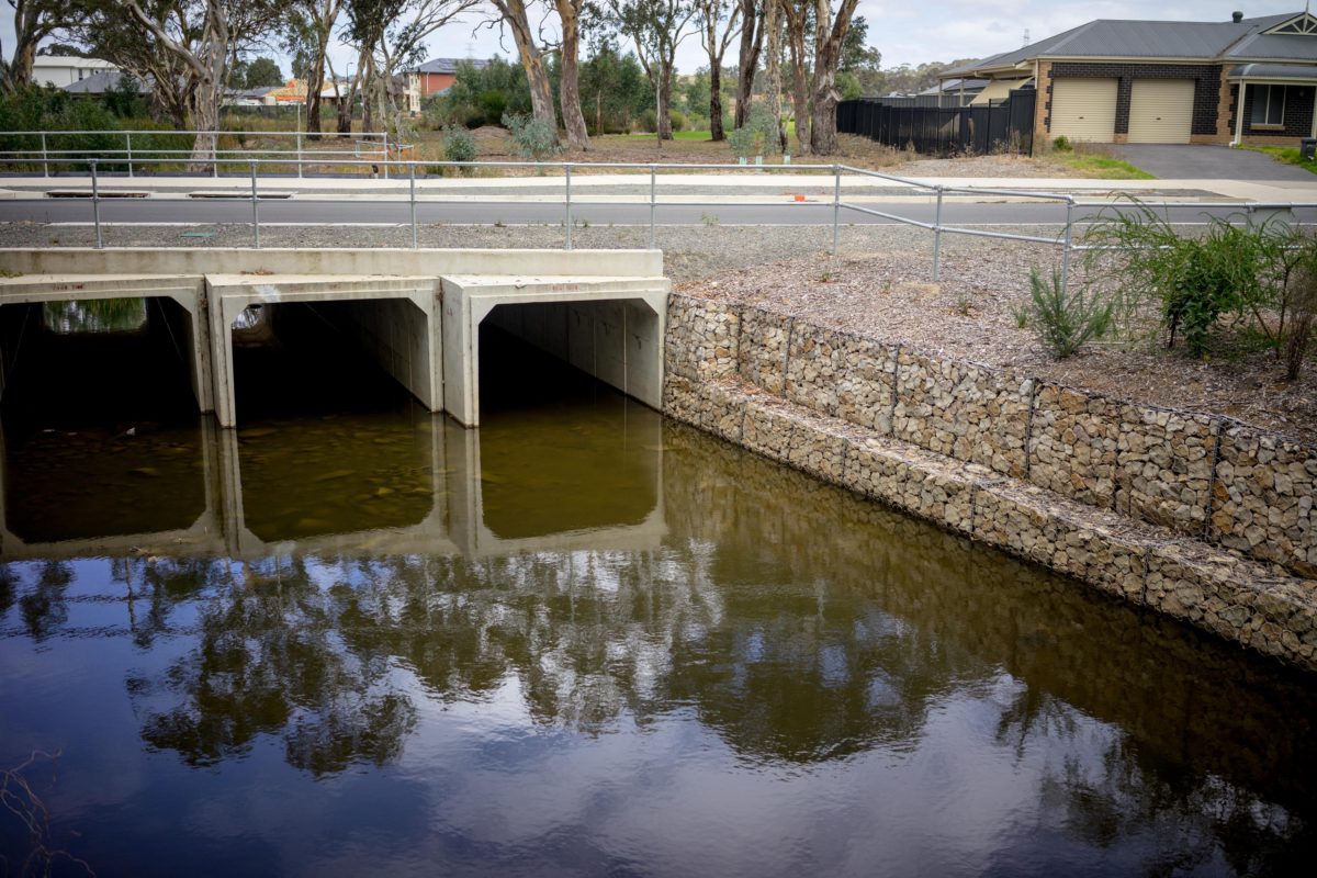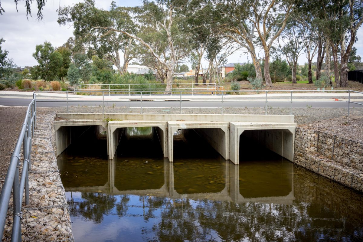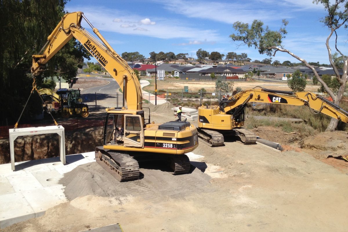 Beltrame Civil was engaged by the City of Playford to construct a large triple cell culvert crossing over Smith Creek to allow the linkup of the eastern and western sides ends Crittenden Road. The project was a key element of the Playford Alive master Plan and supported the vision for the overall area in providing a highly connected street pattern, giving motorists multiple route options and linkages between the suburbs of Smithfield Plains and Andrews Farms. The project scope included 3000m3 of cut to fill and import to fill; construction of 380m2 of in-situ culvert base slab; construction of a 30m long triple cell 3600x1800mm precast culvert bridge; construction of in-situ reinforced concrete head and wingwall; demolition of 900m2 of existing asphalt pavement; construction of 1800m2 of new deeplift asphalt pavement; construction of 500m of concrete kerb and gutter, including aprons, kerb ramps and driveways; and upgrading of Smith Creek including significant reshaping, batters incorporating matting for erosion control, extensive gabion walling and reno mattresses, rock lining and tree planting.