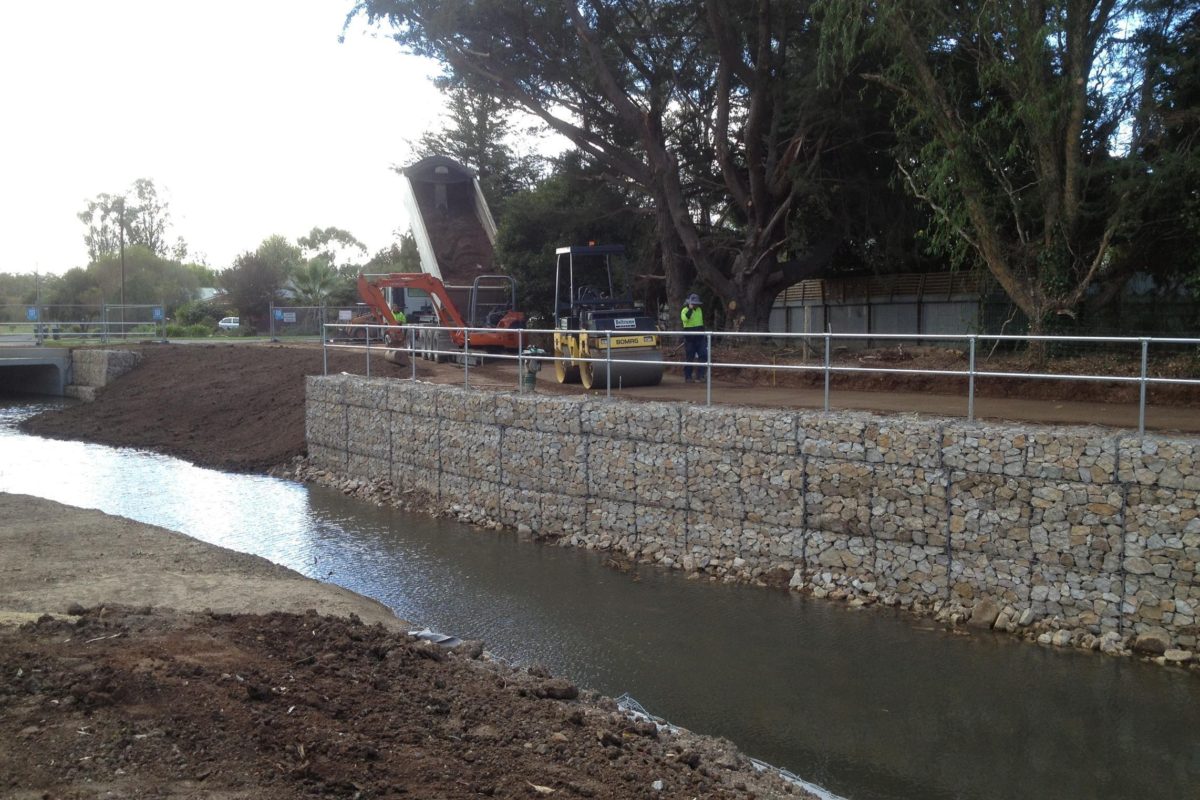 Construction works to replace existing undersized culvert bridges on Hurling Drive and Faehrmann Avenue and diversion works to Railway Creek. The project scope included the construction of two cell 3300x1800RCBC and four cell 2400x1800RCBC bridges, with in-situ concrete base slabs and wing walls. Significant earthworks to reshape railway creek including 4500m3 of cut to dispose and reshaping of batters incorporating matting for erosion control, 250m3 of gabion walling and reno mattresses, rock lining and planting of more than 5,000 trees, shrubs, dry land grasses and aquatic plants.